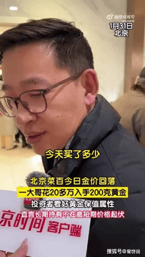 1月31日凌晨,现货黄金价格一度下跌超过12%,盘中跌穿每盎司4700美元,创下40年来单日最大跌幅,不少刚刚入手的人心情肯定是不会好,而一男子看到新闻后,连忙从家里拿着钱来到商城补货,斥资约20多万入手200 克黄金,他认为黄金保值,看好长期持有,不在意短期价格起伏