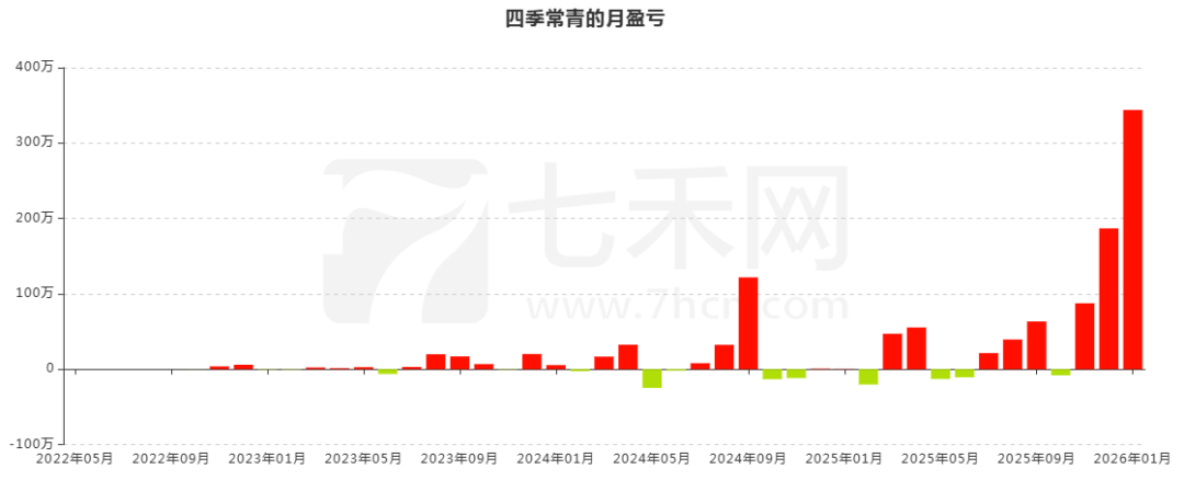 账户累计交易40个月,盈利26个月,亏损14个月。盈利最多的月份是2026年1月,盈利金额为343万。