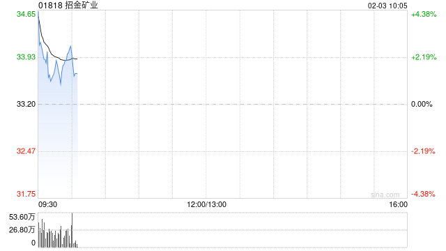 黄金股早盘集体高开,截至发稿,招金矿业(01818)上涨5.12%,报34.9港元;赤峰黄金(06693)上涨4.74%,报36.7港元;紫金黄金国际(02259)上涨4.67%,报210.8港元;万国黄金集团(03939)上涨4.26%,报13.46港元。