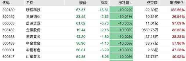 黄金股大面积跌停!
