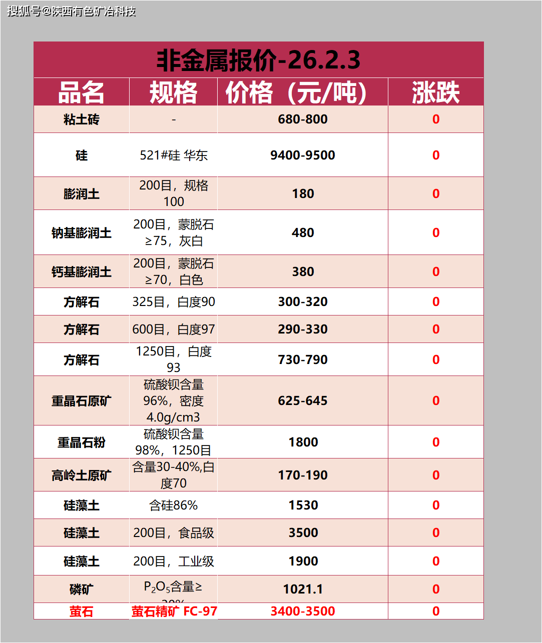 2月3日金属非金属矿产品报价#...