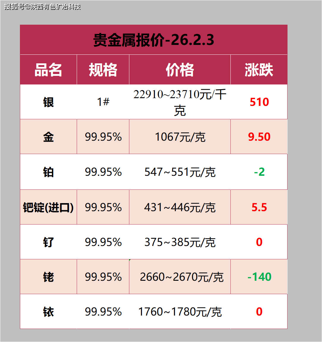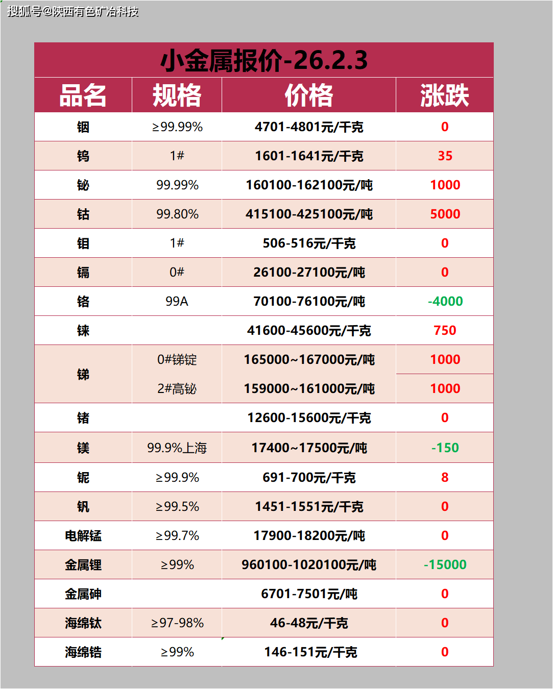 2月3日金属非金属矿产品报价#金价上涨#