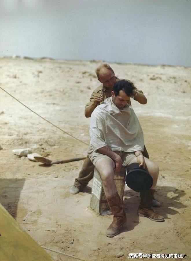 北非战场上剪头发的加拿大空军。