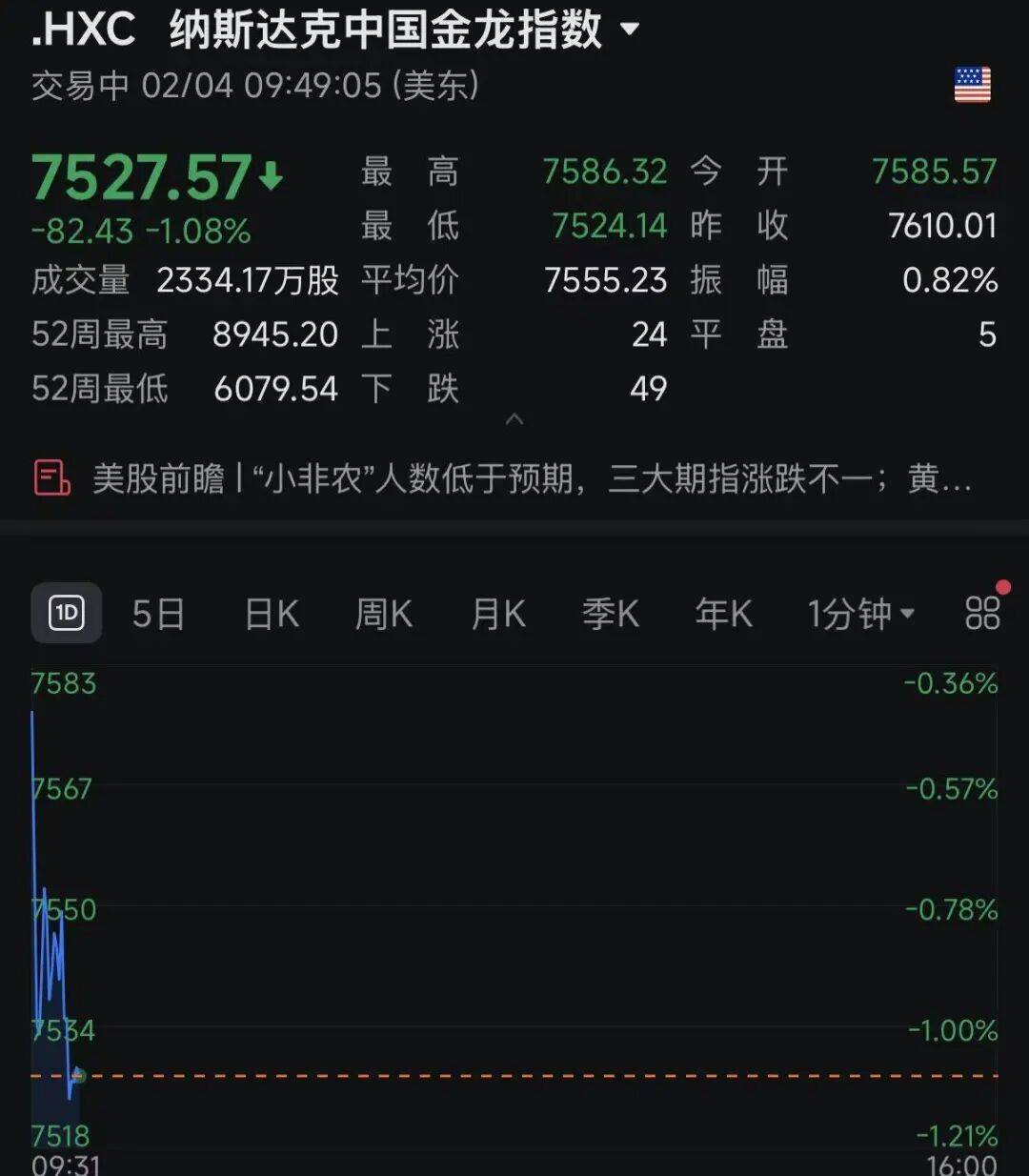 中概股方面,纳斯达克中国金龙指数跌逾1%,个股方面,晶科能源暴涨超17%,博美集团涨逾9%,能源股集体拉升。