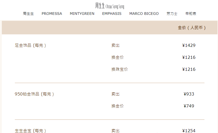 受到国际现货黄金价格影响,今天,多个饰品品牌金饰价格上涨。 周生生足金饰品报价1429元/克,较此前上涨19元。周大福足金饰品报价1426元/克,较此前上涨20元。