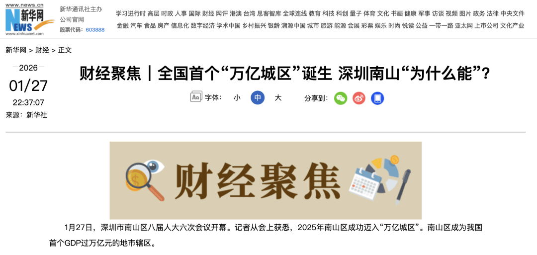 最近,深圳南山区公布了它的2025年GDP 10102.38亿元。