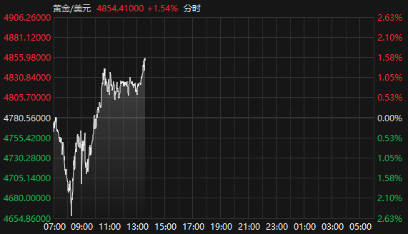 上证报中国证券网讯 据Choice数据,2月6日,国际现货黄金午后站上4850美元/盎司关口,截至13:36报4854.41美元/盎司,日内涨1.54%;现货白银报73.45美元/盎司,日内涨3.49%。