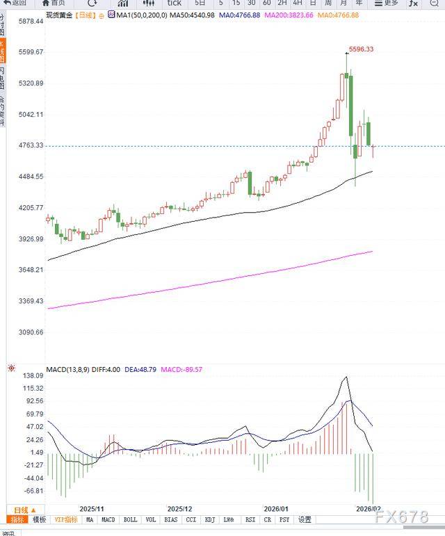 上方来看,4800美元附近构成第一道明显阻力,只有重新站稳该区域,金价才有望再度测试4900美元甚至更高水平。
