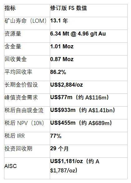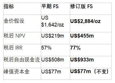 公告指出,这主要得益于金价假设更新、采矿计划优化,以及模块化选矿厂设计提升了整体执行效率。