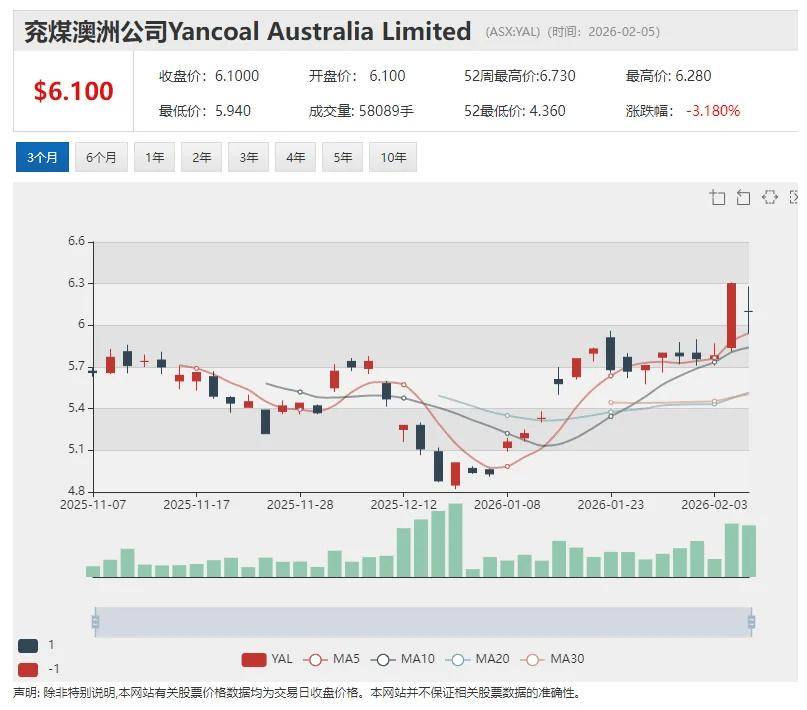 中国煤炭需求持续增长 Yancoal兖煤澳大利亚(ASX:YAL)闻讯飙涨9% 逼近52周高点