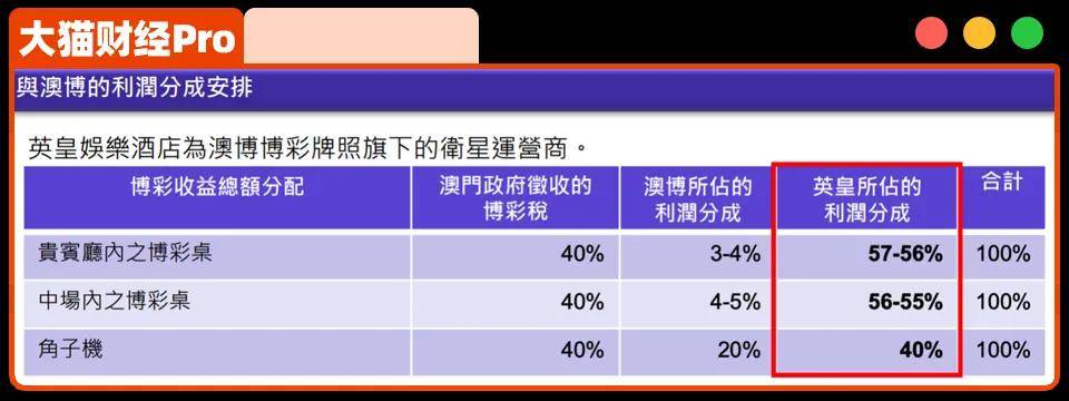 博彩税收走40%,澳博抽成4%左右,56%的收益,都归英皇,差不多一年12亿左右。