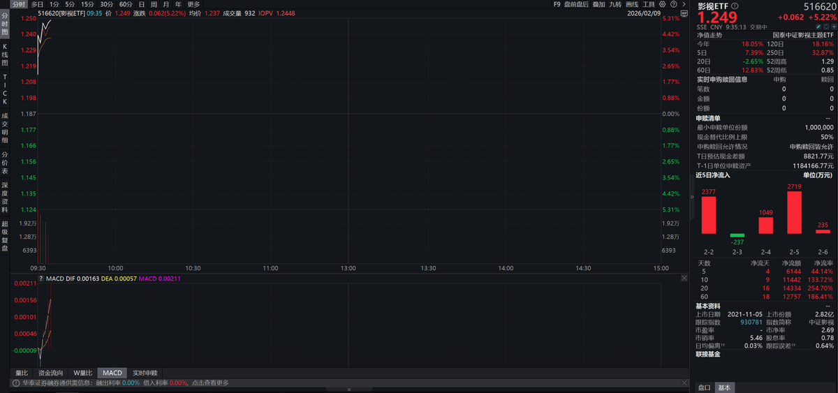 春节档临近,影视板块催化趋于密集。叠加春节期间追剧等文娱消费需求的季节性释放,影视板块情绪迎正向提振。聚焦影视板块全产业链工具影视ETF(516620)开盘大涨5%,近20日吸金超1.4亿元。