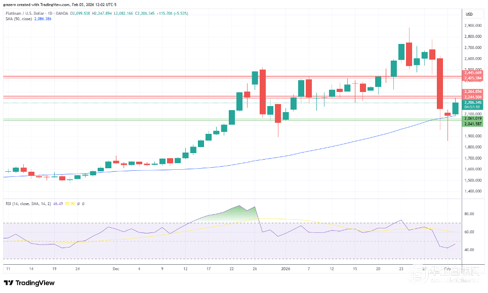 如果铂金价格突破2265美元,则将会向2425美元至2445美元阻力位移动。