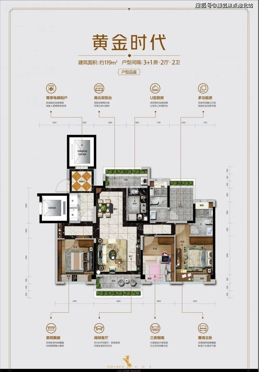 一、建面约119㎡,3+1房