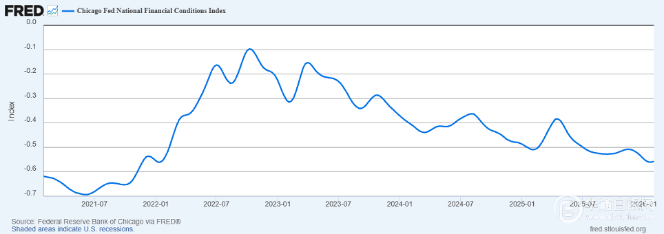 下图显示,芝加哥联储的全国金融状况指数处于宽松状态,数值为-0.557。然而,风险行为正在发生变化。