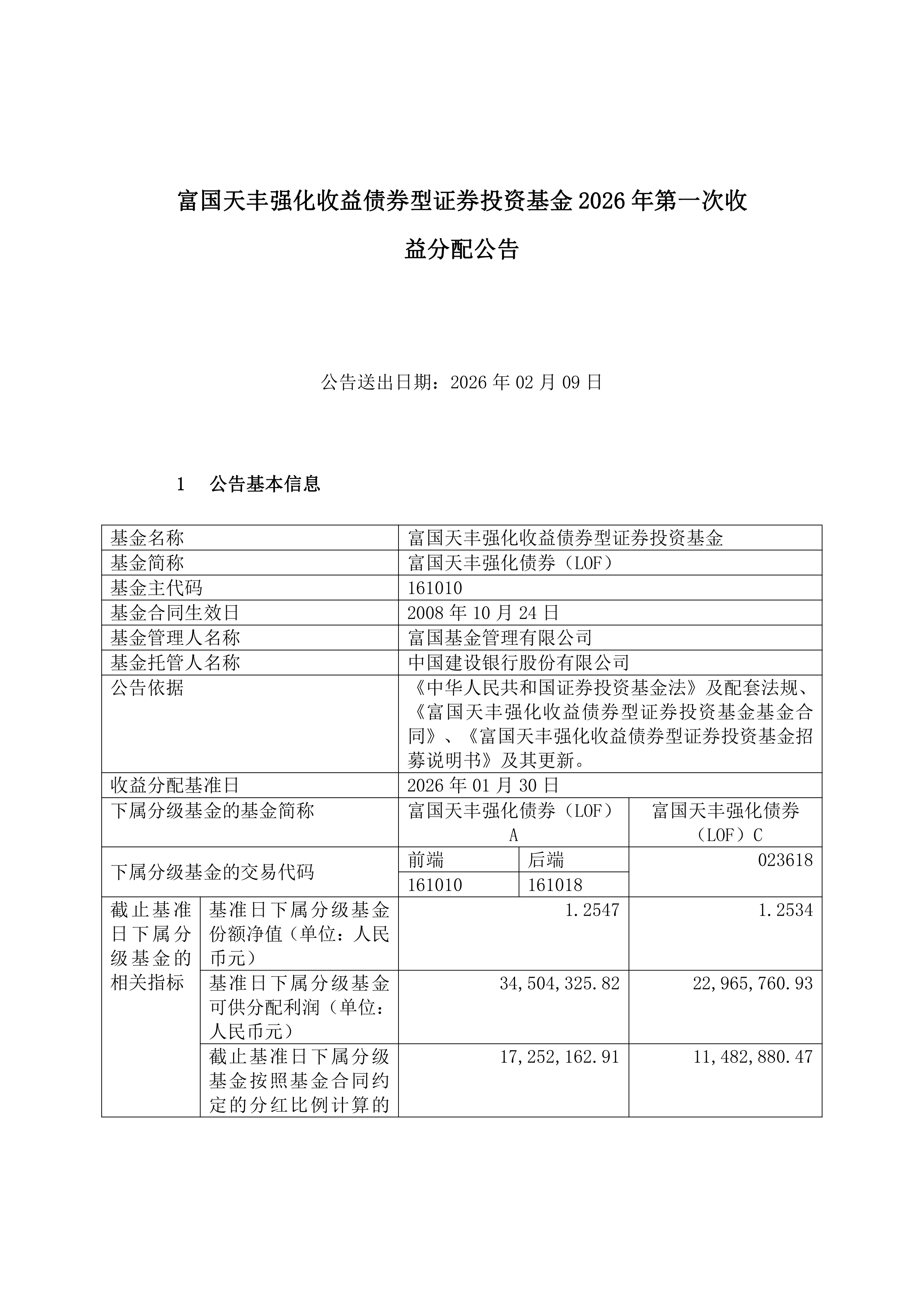 基金-富国天丰LOF-富国天丰强化收益债券型证券投资基金2026年第一次收益分配公告
