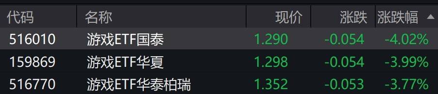 受盘面影响,游戏相关ETF跌约4%。