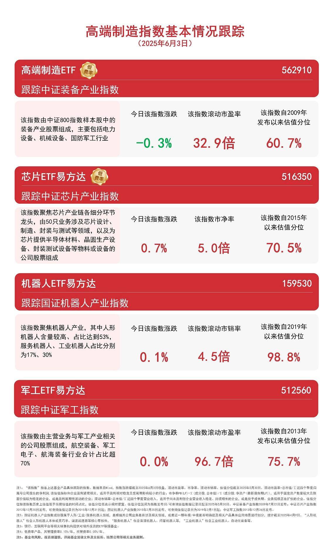 截至收盘,国证机器人产业指数上涨0.1%,中证芯片产业指数上涨0.7%,中证军工指数上涨0.04%,中证装备产业指数下跌0.3%。