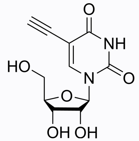 5-Ethynyl uridine(5-乙炔基尿苷)是一种核苷类似物,常用于生物化学和细胞生物学研究中,尤其是在研究RNA合成、细胞增殖和基因表达调控等方面。