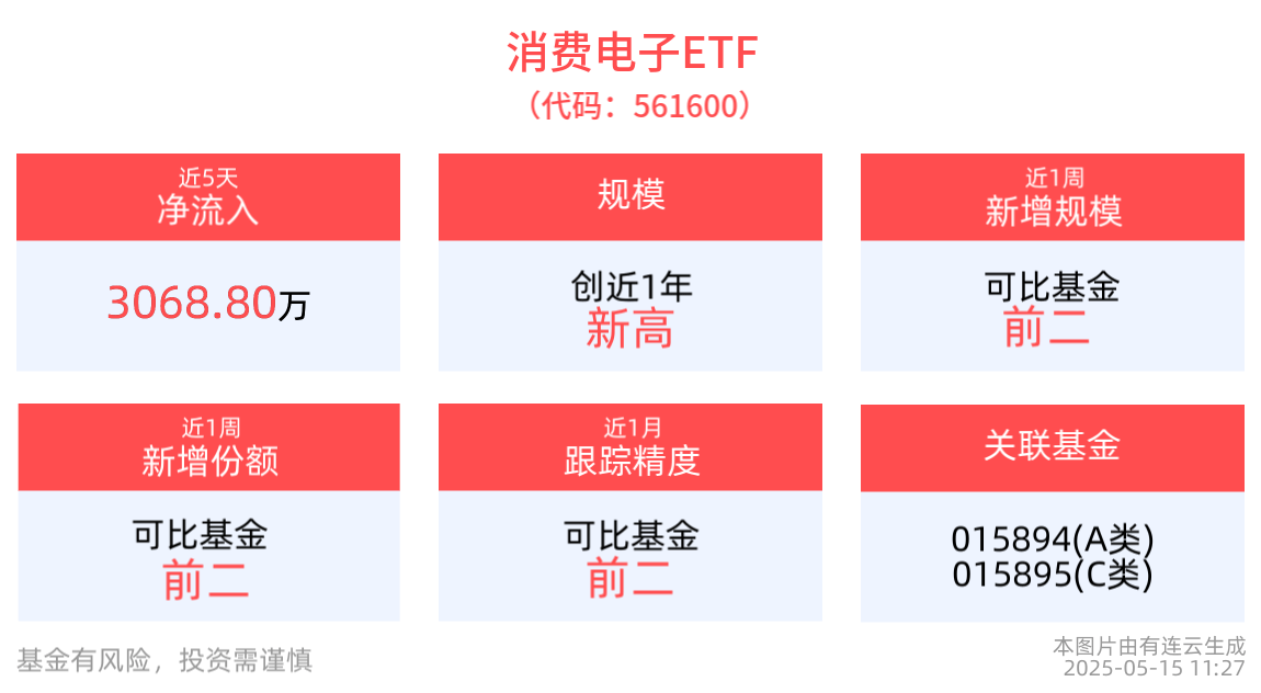 规模方面,消费电子ETF最新规模达2.06亿元,创近1年新高。