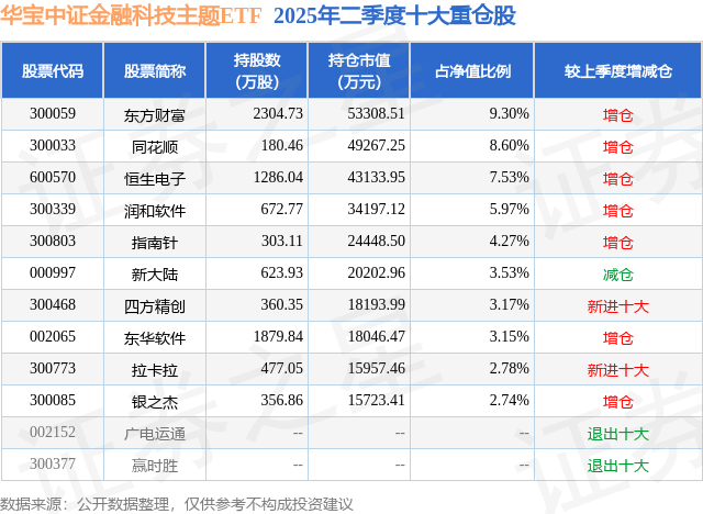 华宝中证金融科技主题ETF的前十大重仓股如下:
