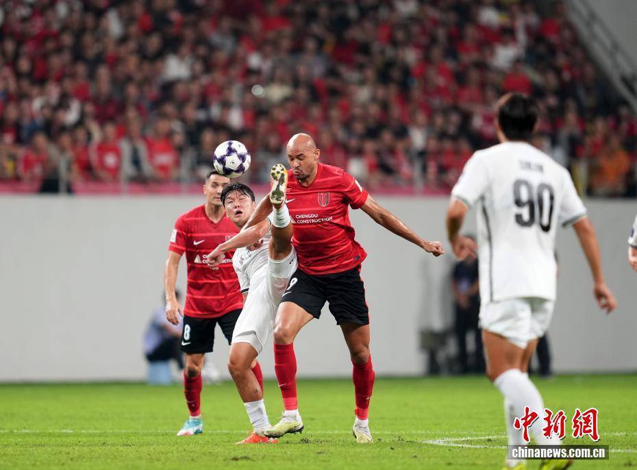 2025/2026亚足联冠军精... 9月30日晚,四川成都,成都蓉城队队员古尔芬克尔(红衣、左一)在比赛中。当日,2025/2026亚足...