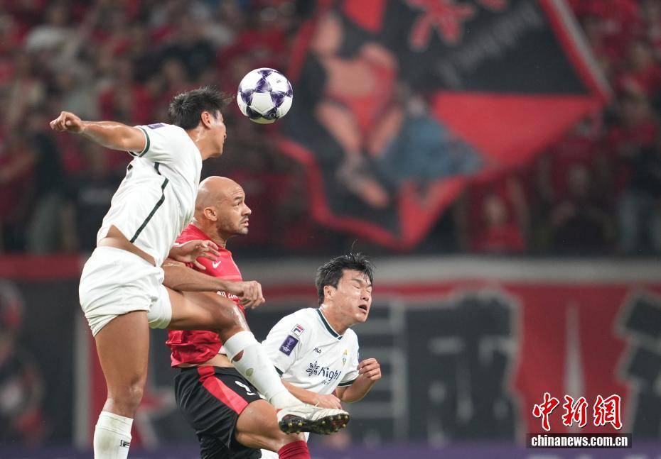 9月30日晚,四川成都,韩国江原FC队队员(白衣)与成都蓉城队队员在比赛中。当日,2025/2026亚足联冠军精英联赛第2轮在成都举行,成都蓉城队1比0胜韩国江原FC队。中新社记者 安源 摄