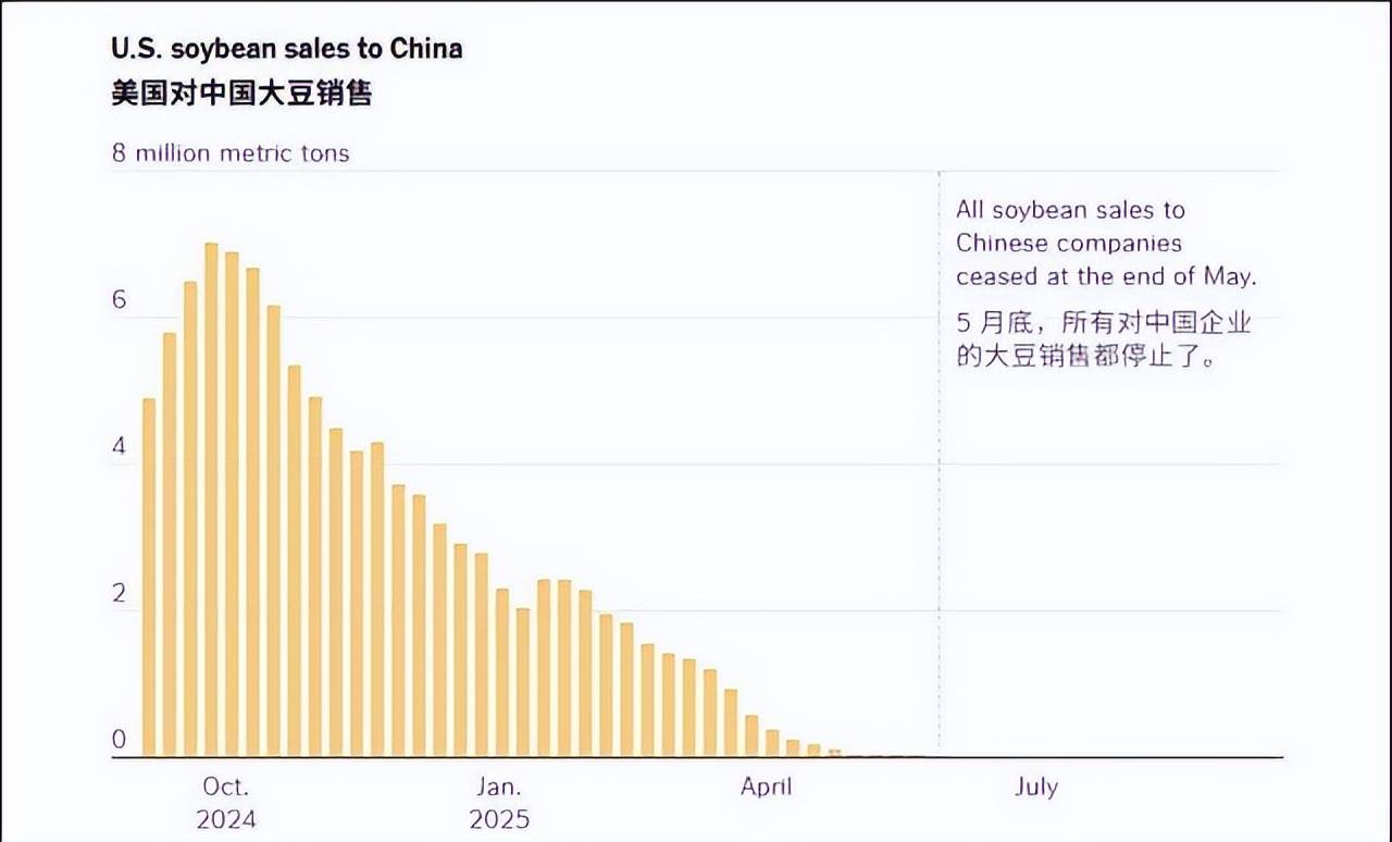 先说大豆。现在是9月,正是美国大豆的丰收季。往年这个时候,港口应该是排着长队等着装船运往中国的货轮。但今年呢?据美国大豆协会的数据,从5月份开始,中国就没下过一张美国大豆的订单。 这不是危言耸听,是实实在在正在发生的事。
