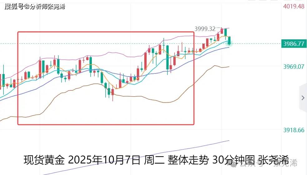 上交易日周二(10月7日):国际黄金继续反弹走强收阳,进一步向今年6月份金价还在3400美元的时候就给出的看涨目标4000美元上方的前景迈进,目前来看,多头动力未有减弱迹象,暗示在突破4000关口之后,还将继续上行,有望冲击4100美元以及4200美元。