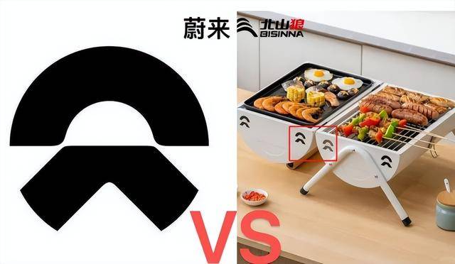 无独有偶,新能源车蔚来也曾遭遇过类似的侵权,一家户外品牌竟将自家烧烤炉的通风孔,设计成了蔚来车标的形状,这等于是把别人的品牌图腾,直接做成了自己产品的一部分,意图不言而喻。