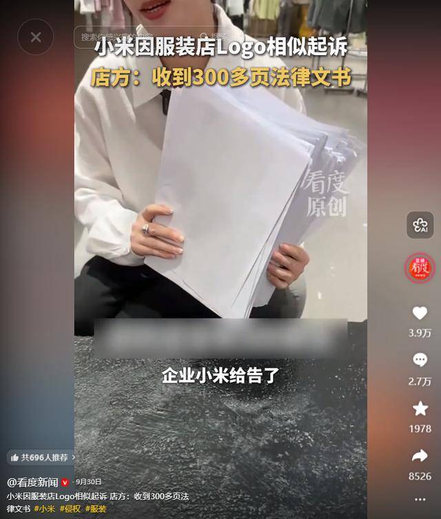 这不广州一家叫谜后的服装店被小米起诉了,就因为他们家的品牌logo和小米的logo太相似了,简直像复制粘贴一样,所以被小米告了,店家也收到了小米300多页的法律文书,网友的态度也各不相同。