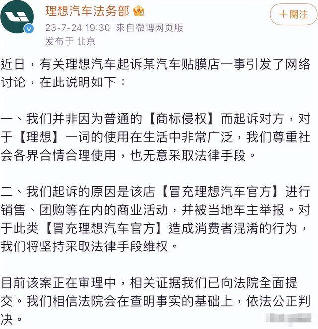 理想汽车就曾将山东临沂一家名为新理想的汽修店告上法庭,这家店主辩称自己小名叫理想,且店铺成立于2012年,早于2015年成立的理想汽车,但理想汽车拿出的证据让这场辩解显得苍白无力。