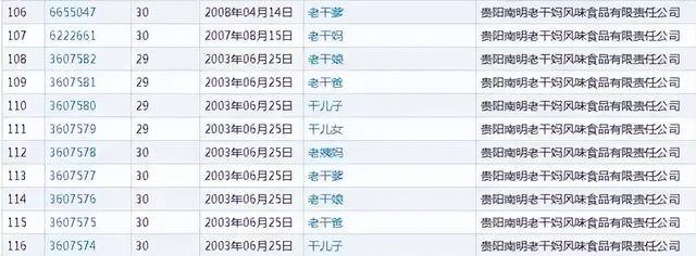 但事后追惩终究是被动的,更聪明的企业早已学会了前瞻式的防御,去网上查一下老干妈阿里巴巴这些公司的商标注册列表,你会发现一个有趣的现象,老干妈不仅注册了自己,还把老干爹、老干娘、干儿子等一并注册。