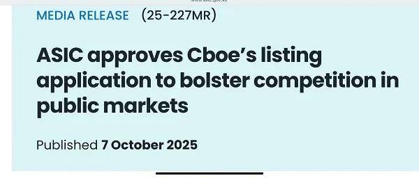 ASIC批准Cboe Australia作为上市新平台和ASX进行竞争 澳洲IPO市场博弈格局初现