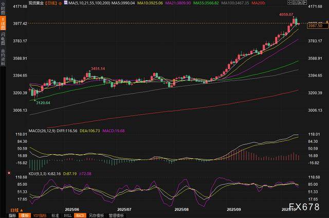 驱动此轮下跌的直接诱因,是美元指数的持续走强以及中东地区紧张局势的暂时缓和。美元指数连续四个交易日上涨,创下近两个月新高,使得以美元计价的黄金对于海外买家而言变得更加昂贵。而以色列与哈马斯达成停火协议,则削弱了黄金作为地缘政治避险资产的光芒,促使部分投机者选择“落袋为安”。周五(10月10日)亚市早盘,现货黄金震荡微涨,目前交投于3987.60美元/盎司附近,涨幅约0.34%。