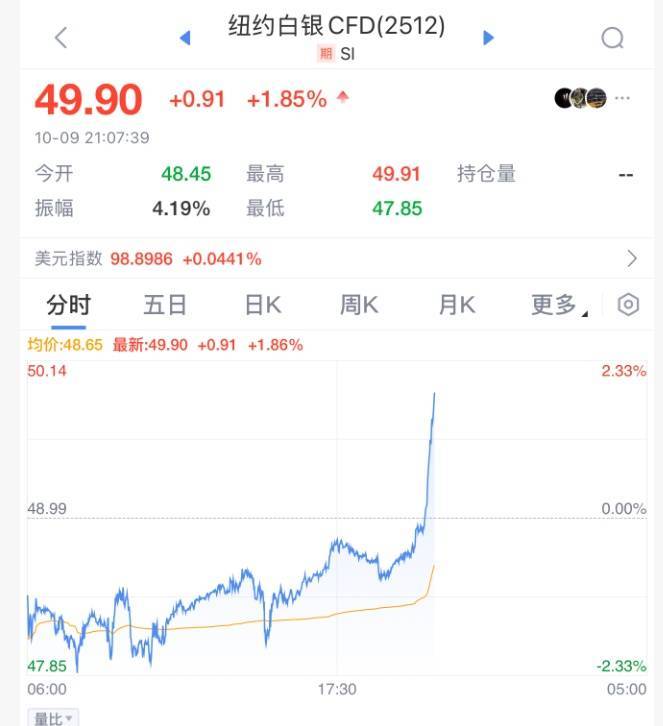 10月9日晚间,受避险需求飙升与伦敦现货市场供应趋紧的双重推动,现货白银价格跃升至数十年来新高。