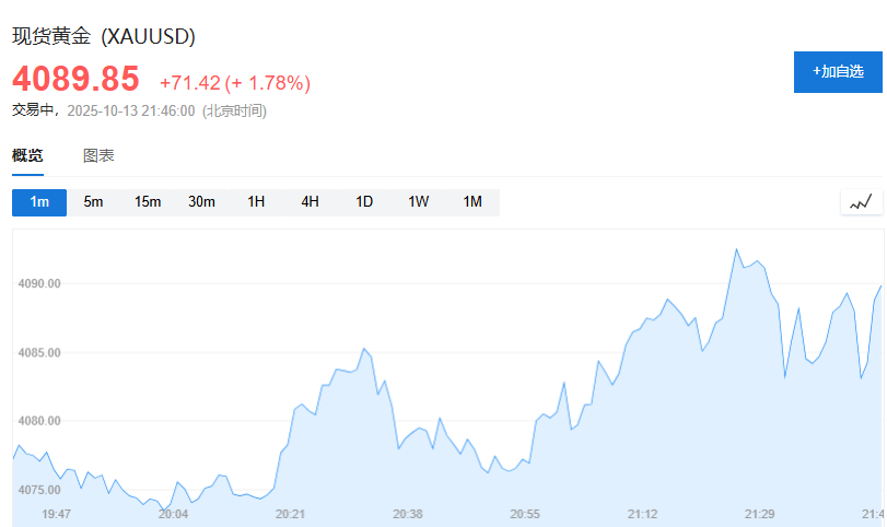 现货黄金日内大涨2.00%,一度升至4090.64美元/盎司,再创历史新高。与此同时,白银市场出现更为剧烈的价格波动,现货银价触及每盎司51.70美元的纪录高位。