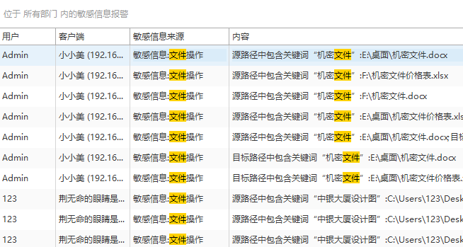 软件可以设置“敏感关键词”(如“客户名单”“财务报表”“核心技术”),并扫描标记含有这些预设敏感词的文件,要是员工未经授权访问这些敏感文件,系统会立刻给管理员发报警信息,管理员可以及时阻止。