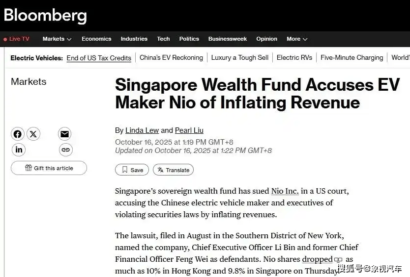 综合彭博社等多家媒体报道,新加坡主权财富基金——新加坡政府投资公司(GIC),已在美国法院对蔚来汽车,以及创始人李斌等高管提起诉讼。