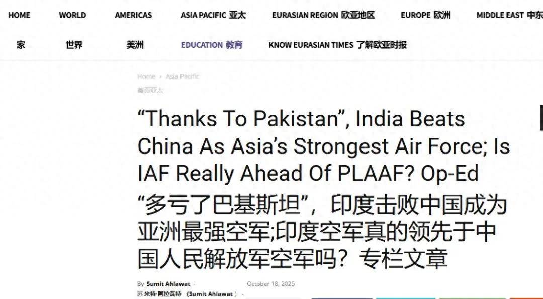 《欧亚时报》提到,依据国际媒体如路透社的报道,印度空军在印巴5·7空战中损失了包括阵风战机在内的多架战机。原因之一是印度情报部门严重低估了霹雳-15E导弹的射程,巴基斯坦的歼-10C战机凭借霹雳-15E导弹在200公里外击落了印度的阵风战机。从这一点来看,印度空军领先中国空军的说法显得十分牵强。