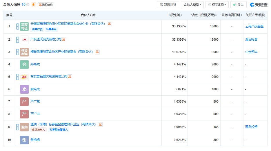 投资界消息,10月16日,云南省高原特色农业基金携手农牧食品龙头企业温氏股份旗下温润投资,在云南设立了云南省政府投资基金体系下首支子基金温润农业生物科技(云南)创业投资基金合伙企业(有限合伙)(以下简称“温润子基金”),并完成工商注册。