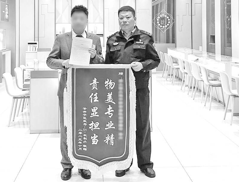 民警将锦旗和感谢信交到店员手中。 受访者供图