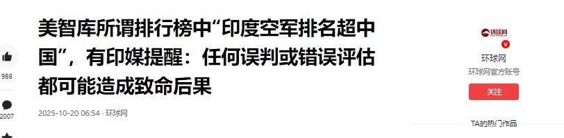 作为战场上天空的主宰,空军有多强在现代战争中至关重要,而美国智库的一份报告却给印度集体打了一针“兴奋剂”,因为印度排名远远高出中国,就连人民党都转发了。