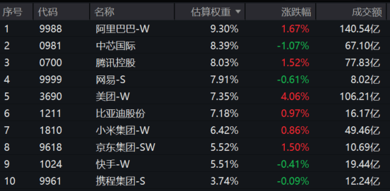 截至收盘,恒生科技ETF基金(513260)标的指数权重股多数飘红:美团-W涨超4%,阿里巴巴-W、腾讯控股、京东集团-SW涨超1%。