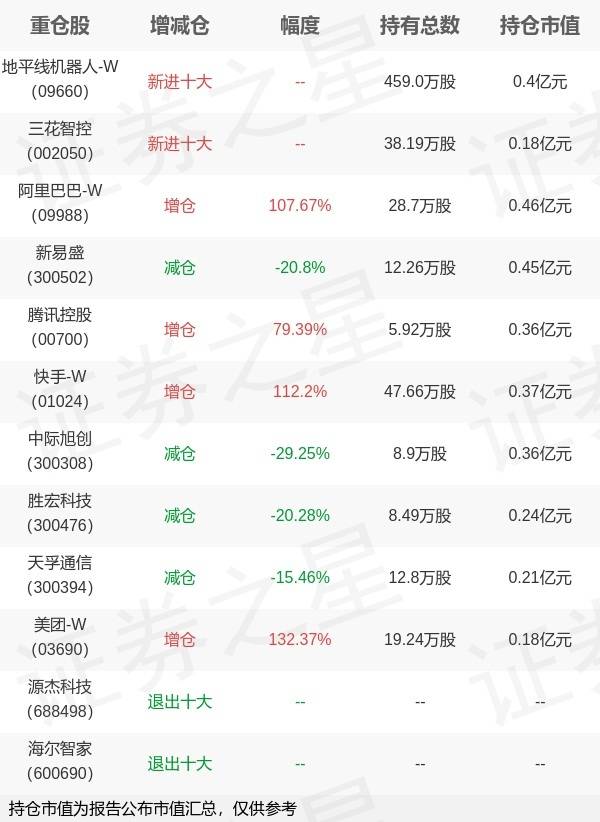 证券之星消息,10月28日华商基金旗下胡中原管理的华商安恒债券型基金公布三季报,近1年净值增长率10.58%。与上一季度相比,该基金前十大重仓股新增地平线机器人-W,三花智控;并对阿里巴巴-W增仓14.88万股,为该基金第一大重仓股;源杰科技,海尔智家等退出前十大重仓股;详细数据如下:
