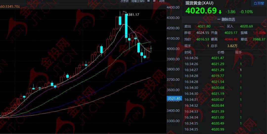 隔夜,现货黄金上演惊天逆转,从盘初一度跌至3915后震荡上涨,收复4000整数关口,最高触及4026.88美元,收报4024.18美元,涨幅约2.4%,为10月20日刷新历史高点回落以来最大单日涨幅。今日欧市盘中,黄金窄幅震荡,目前在4007美元附近徘徊。