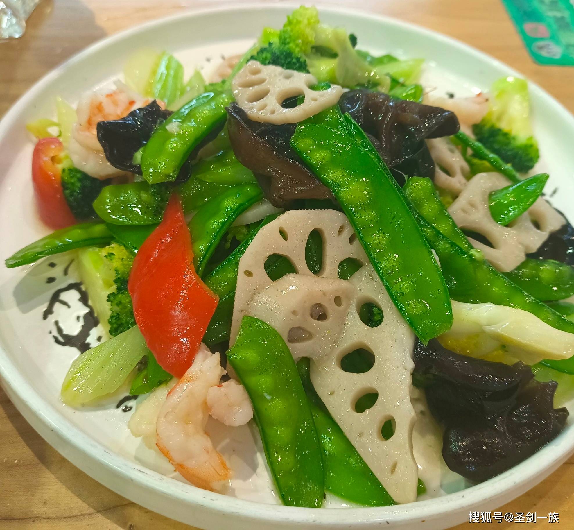 材料:西兰花、胡萝卜、荷兰豆、蒜、盐、鸡精