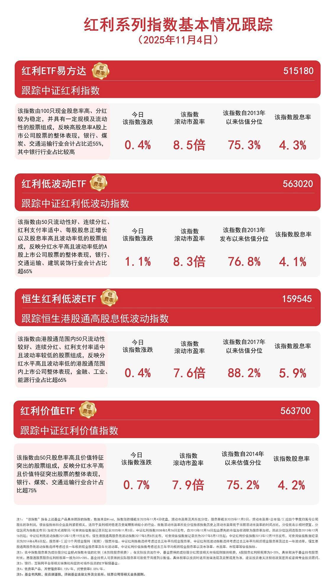 大盘今日震荡调整,红利板块延续昨日涨势,截至收盘,中证红利低波动指数上涨1.1%,中证红利价值指数上涨0.7%,中证红利指数、恒生港股通高股息低波动指数均上涨0.4%,恒生红利低波ETF(159545)全天净申购约3500万份。