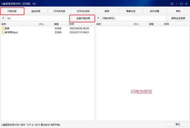 《U 盘超级加密 3000》的 闪电加密和 金钻加密各有优势。闪电加密适合快速隐藏、日常使用,速度快、操作简单,但安全性中等。金钻加密适合高安全性需求,加密强度极高,但必须牢记密码,否则数据无法恢复。