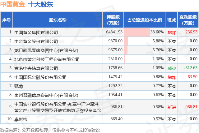根据中国黄金2025年三季报公布的十大股东详情如下: